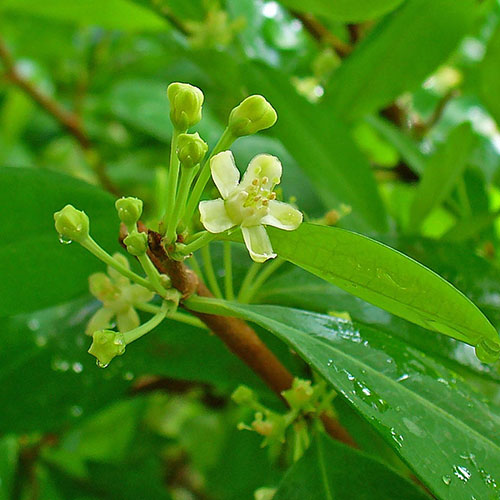کاکائو. این گیاه از تیره Erythroxylaceae با نام علمی Erythroxylan coca است. آن را به زبان انگلیسی Coca به زبان فرانسه ایضا Coca و به زبان آلمانی Cocastrauch می گویند. درخت کاکائو گرمسیری است. بلندیش تا 6 متر می رسد. برگ هایش بیضی و چوب آن سرخ رنگ و در تمام مدت سال گل می دهد. دانه های کاکائو در چند ردیف در داخل میوه قرار دارد و پس از رسیدن زرد یا سرخ می شود اما رنگ دانه بعد از خشک شن قهوه ای می شود. دانه کاکائو را مثل دانه قهوه بو داده می سایند. این گیاه در ایران نمی روید.